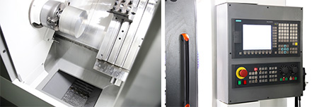 1. Цільна похила станина підвищує жорсткість машини та полегшує транспортування стружки.